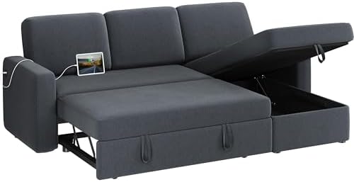 This L-shaped reversible sleeper sofa is equipped with 2 built-in charging ports—1 USB-A and 1 Type-C to power up yourelectronic devices directly from the comfort of your sofa.
