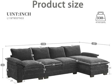 When you need to relax on the sofa, this Chenille combo sofa comes with a double cushion for a soft and comfortable cushioned experience that adds extra support and decorative appeal to your living space. Modular sofas with full sponge cushions are a versatile and practical choice for any living space. This modern section boasts a classic design that will never go out of style. Upholstery and smooth lines blend perfectly to create a harmonious look that fits any decor and enhances your space. A sturdy wooden and iron frame that maintains its shape and elasticity over time ensures long-lasting comfort and durability.