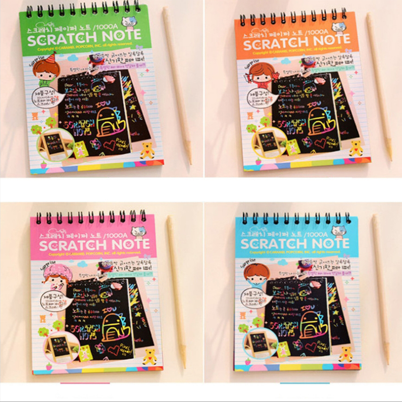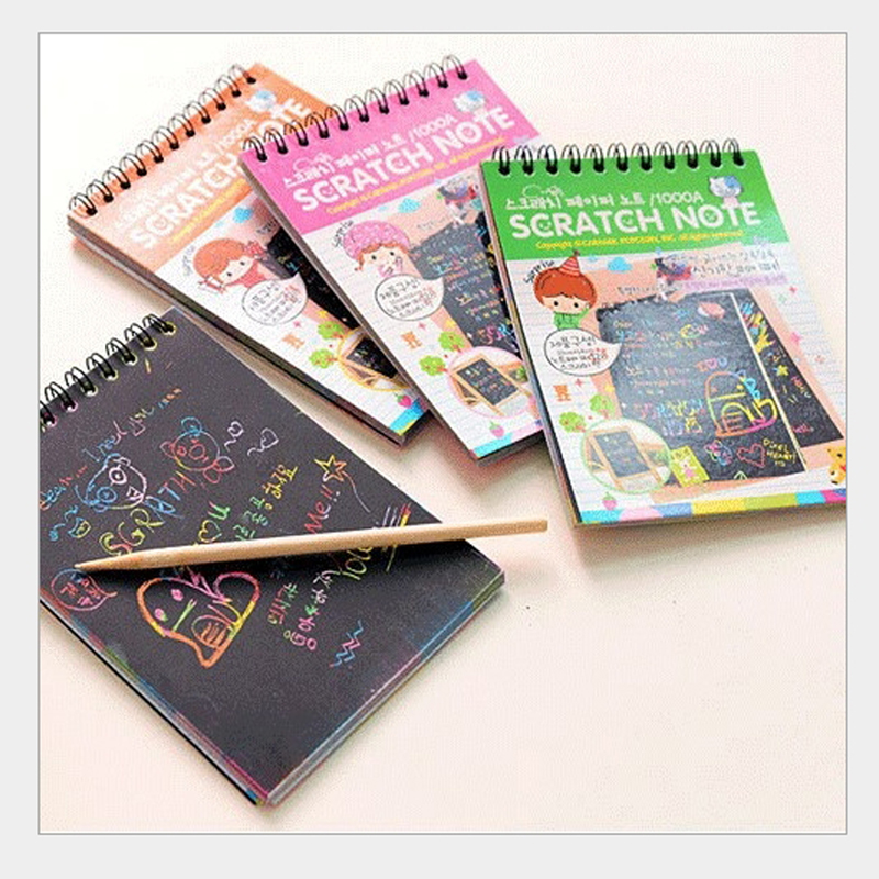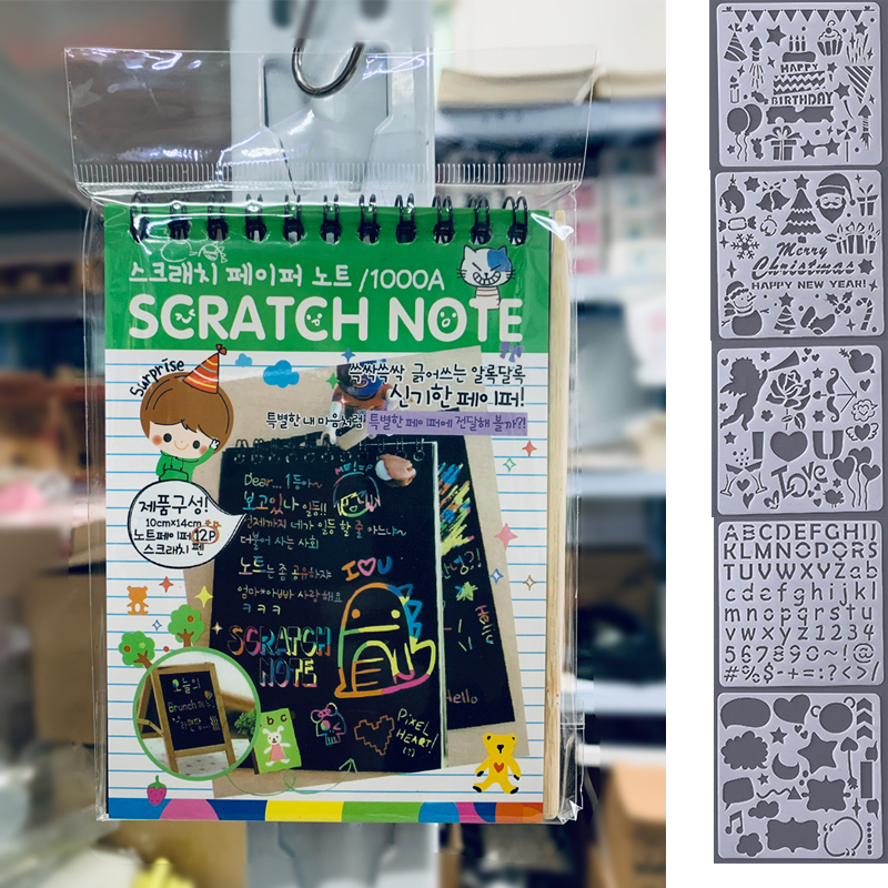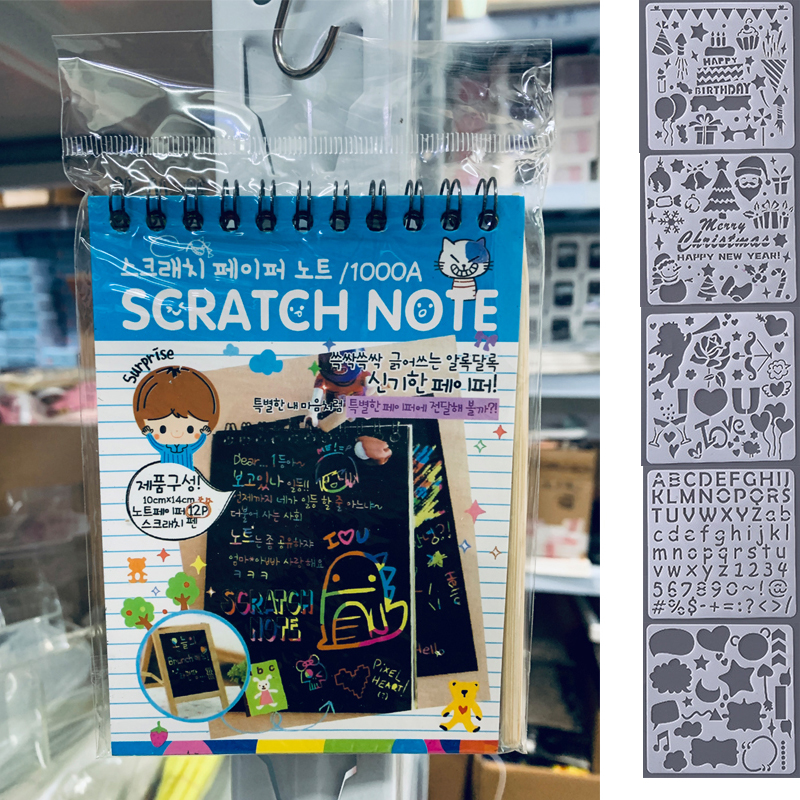 12 Sheets Magic Color Rainbow Scratch Art Paper Card Set with Graffiti Stencil for Drawing Stick DIY Scratch Painting Toy Kids