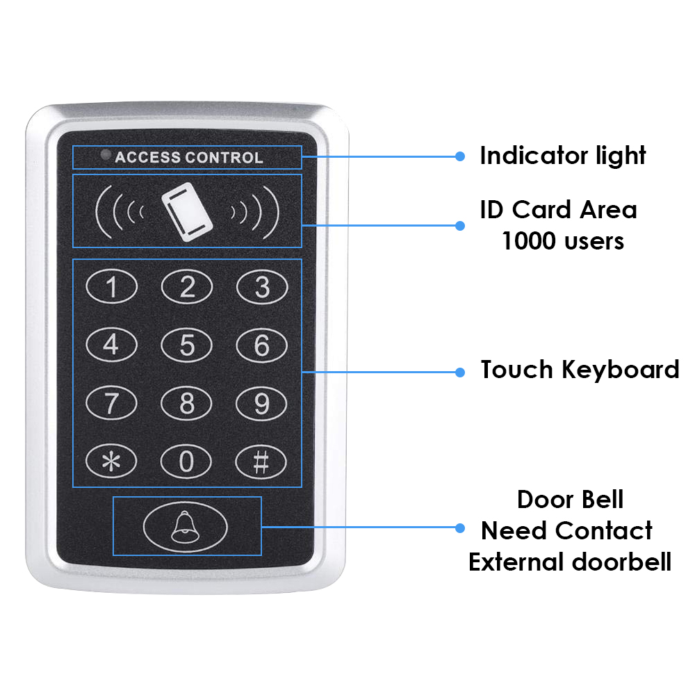 125KHz RFID Access Control Keypad Outdoor Rainproof Cover EM Card Reader 10pcs Keyfobs For Door Access Control System