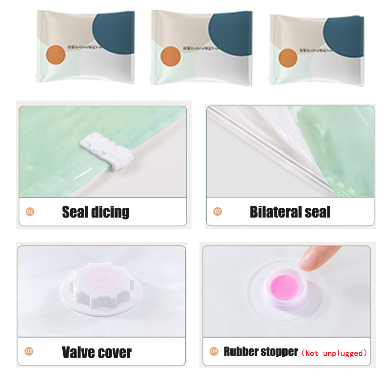 Name: Vacuum compression bag Material: PA+PE Color: color matching Size: S: 50*70cm M: 60*80cm L: 70*90cm XL: 80*100cm 2XL: 80*120cm Function: Foldable, large capacity, tight and airtight, convenient and practical, insect-proof, mildew-proof, space-saving, environmentally friendly, non-toxic, soft and wear-resistant, no odor, simple and stylish, easy to store, vacuum design, clean storage space, good helper Reminder: The size is manually measured, there may be a difference of 1cm, the actual size is subject to the received product. Thank you!
