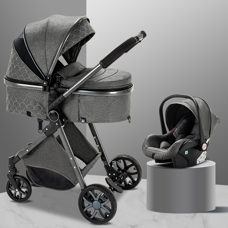 Stroller frame, 2 in 1 basket, baby safety seat, 4 wheels, armrest, basket adapter, foot cover, cup holder, cotton pad