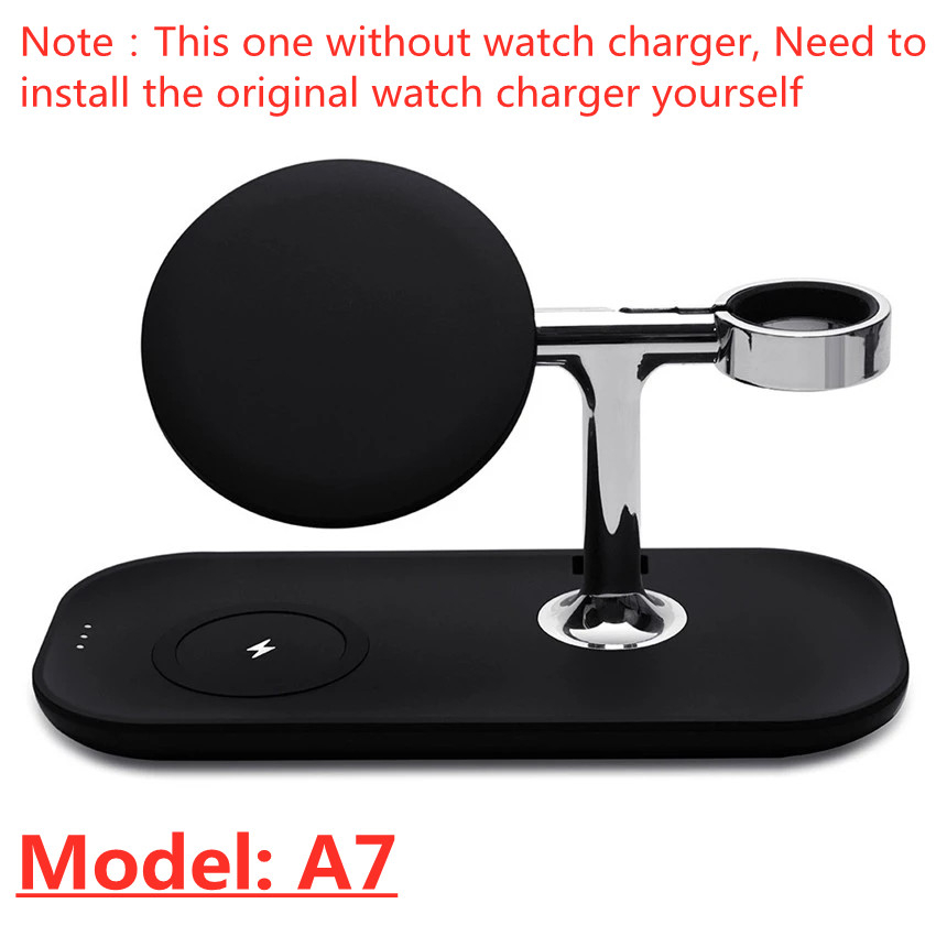 Note: We have three models 3 in 1 wireless charger, three models were magnetic,and were the same functions, The different was the model of Model:A7 do not come with watch charger, you need to install original watch charger yourself on the wireless charger.