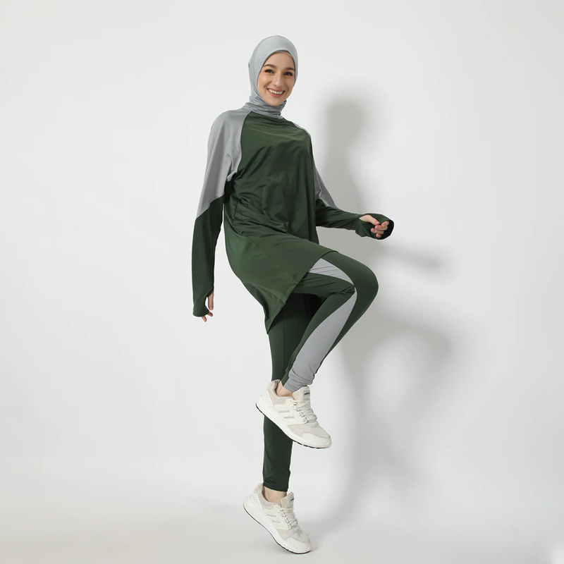 merupakan setelan yang dapat digunakan untuk berolahraga ataupun hang out dan travelling bersama keluarga maupun kerabat. Diperuntukkan bagi pengguna yang bingung dalam mix n match baju. Desain exclusive yang menutupi punggung tangan, terdapat turtle neck, juga siluet pada pants yang membuat betis Anda terlihat lebih jenjang sekaligus sporty dan juga stylish. Selain itu, bahan Terendex Fabric yang adem membuat Anda semakin nyaman saat beraktivitas. Set pun didesain dapat matching dengan produk lain, sehingga baik atasan maupun bawahannya bisa dipadupadankan dengan model yang lain