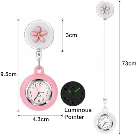 3X Retractable Nurse Watch for Nurses Doctors, Clip-on Hanging Lapel Nurse Watch Silicone Cover Brooch Fob Pocket Watch Badge Reel