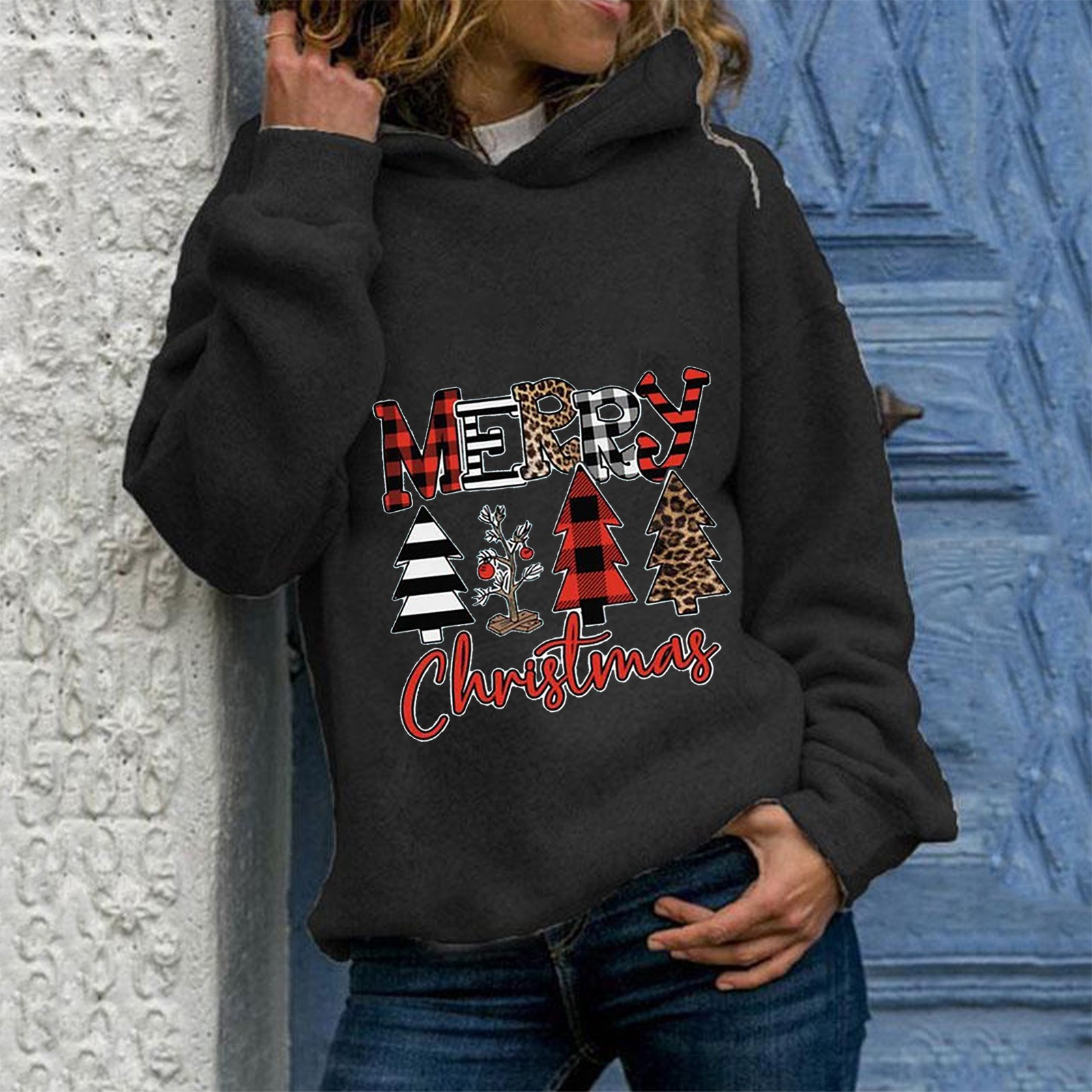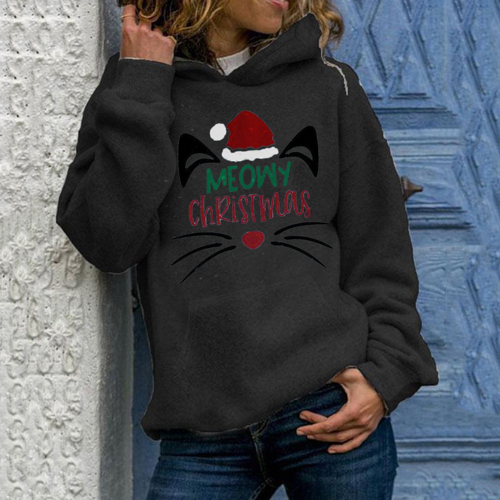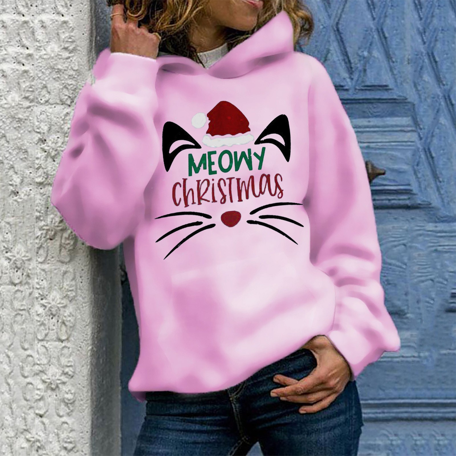 Fashion Womens Casual Round Neck Long Sleeve Print Loose Pullover Hoodie