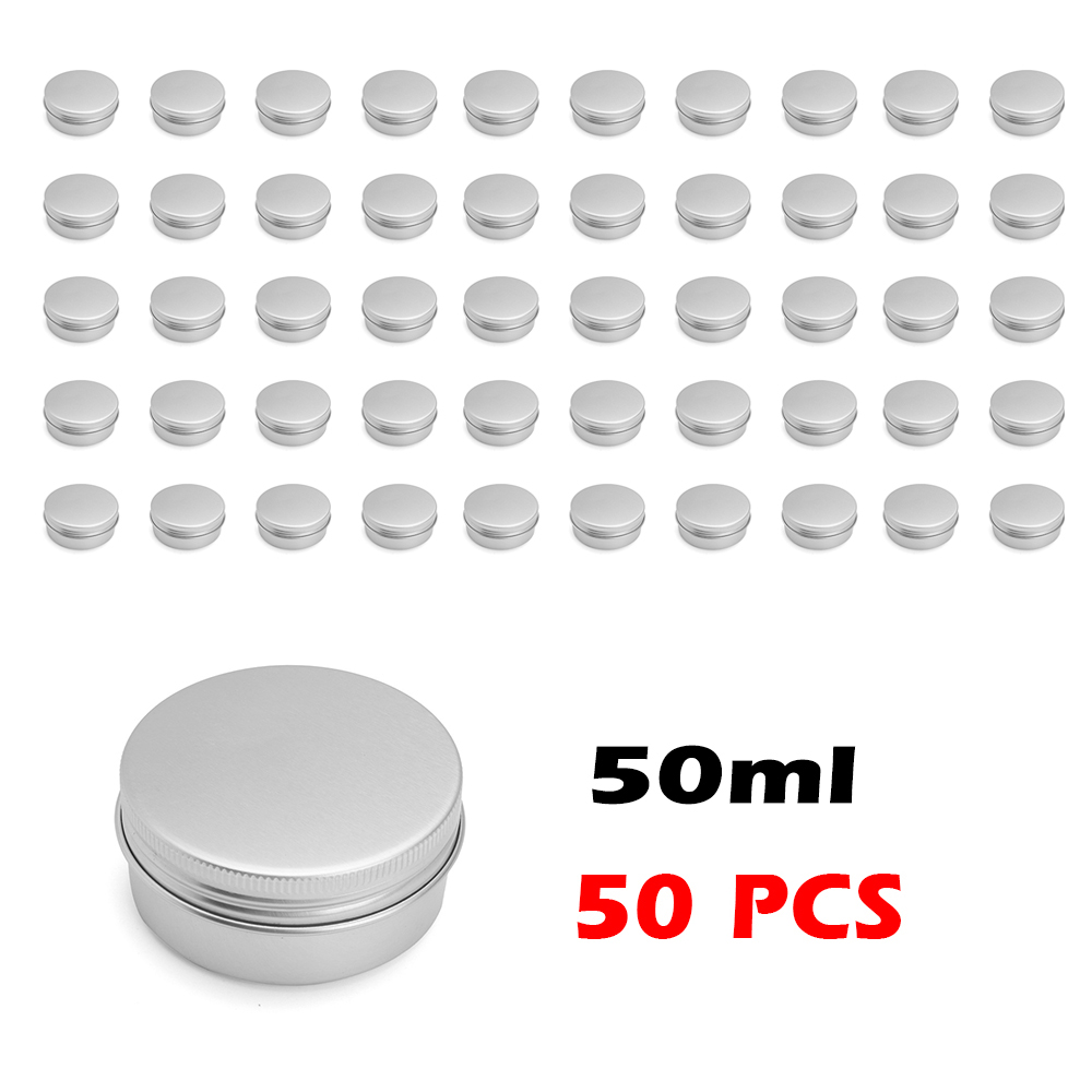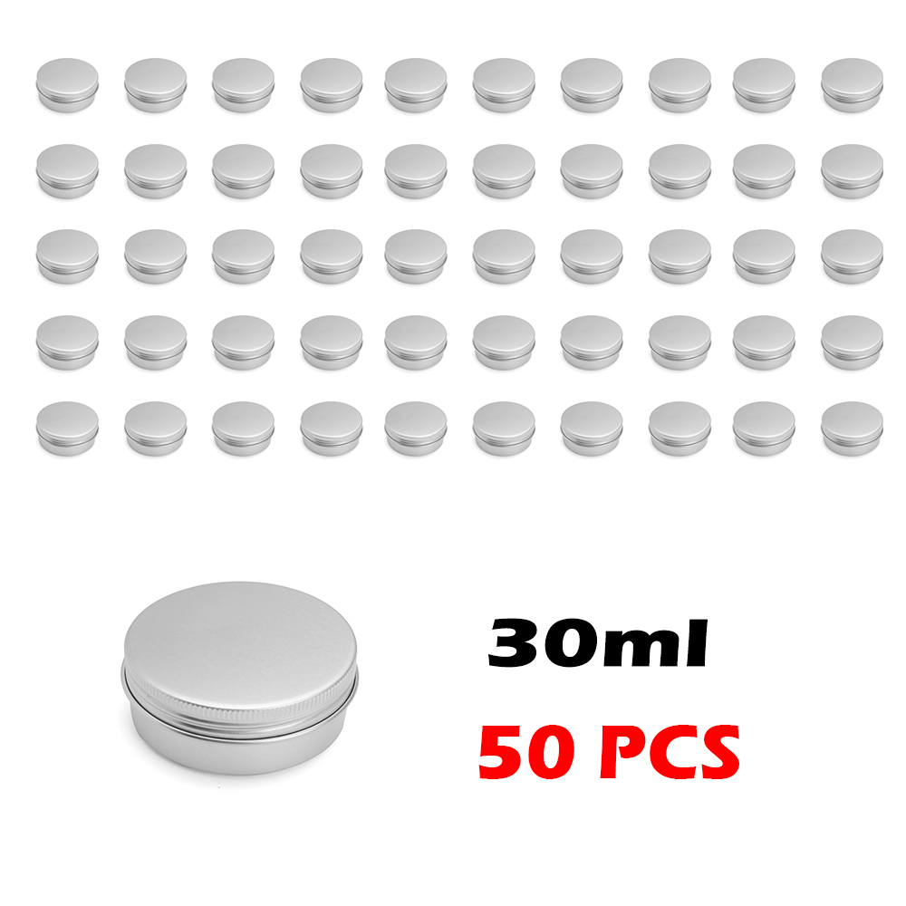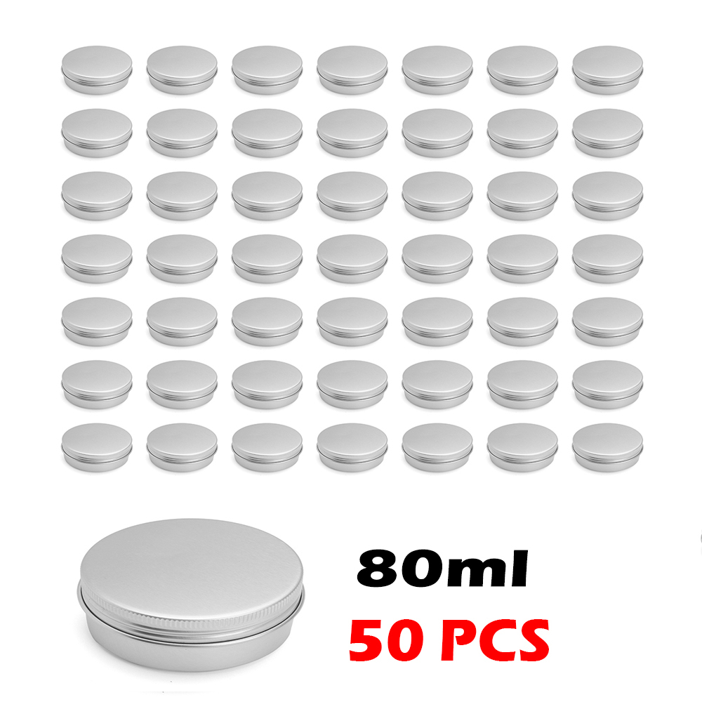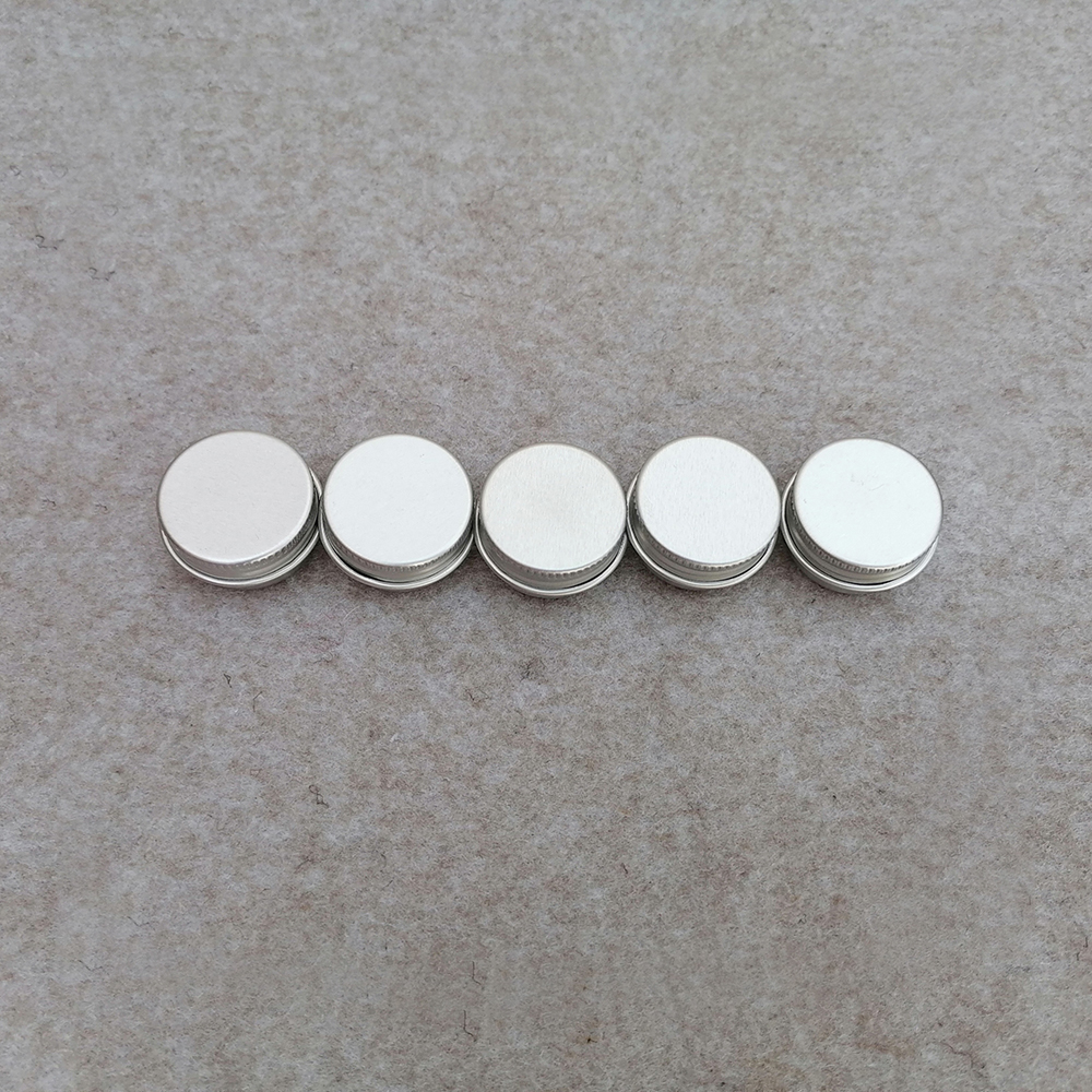2,These round cans containers come with screw-top lids and are made of Aluminum. They have no sharp edges, all edges are rounded and are seamlessly formed from 0.24mm metal.