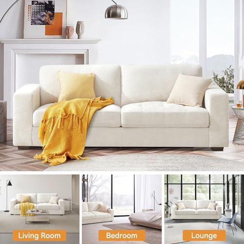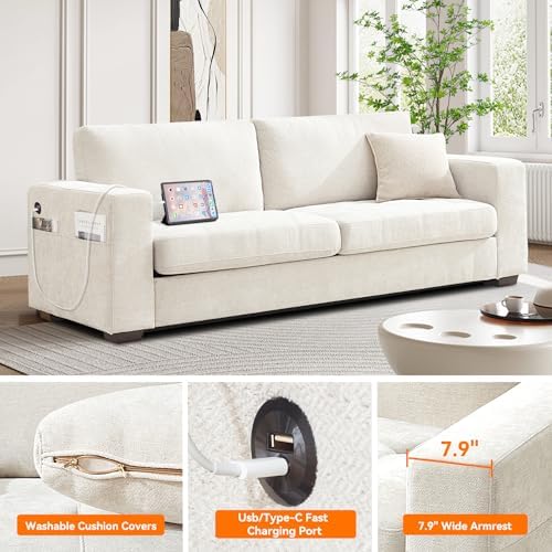 89 Inch Modern Sofa Couch with USB Port & Side Pockets, Chenille Fabric 3 Seater Couch,Comfy Washable Small Sofas & Couches for Living Room Bedroom Apartment(Beige)