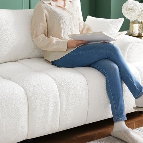 91'' Extra Large Loveseat Sofa, Modern Boucle Fabric Couch Sofa, Available for 4 Persons, Suitable for Living Room and Bedroom with Small Space, White
