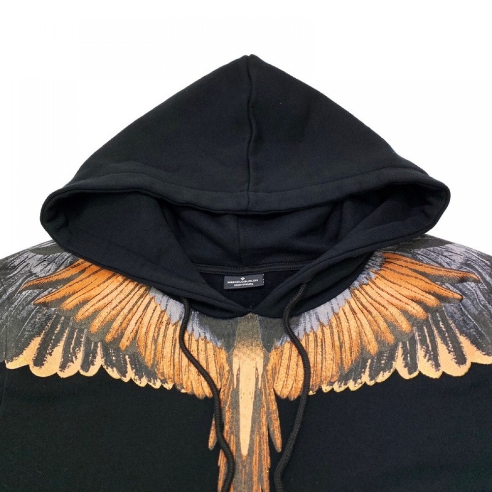 A+ Quality Marcelo Burlon Brown Wings Hoodie Black