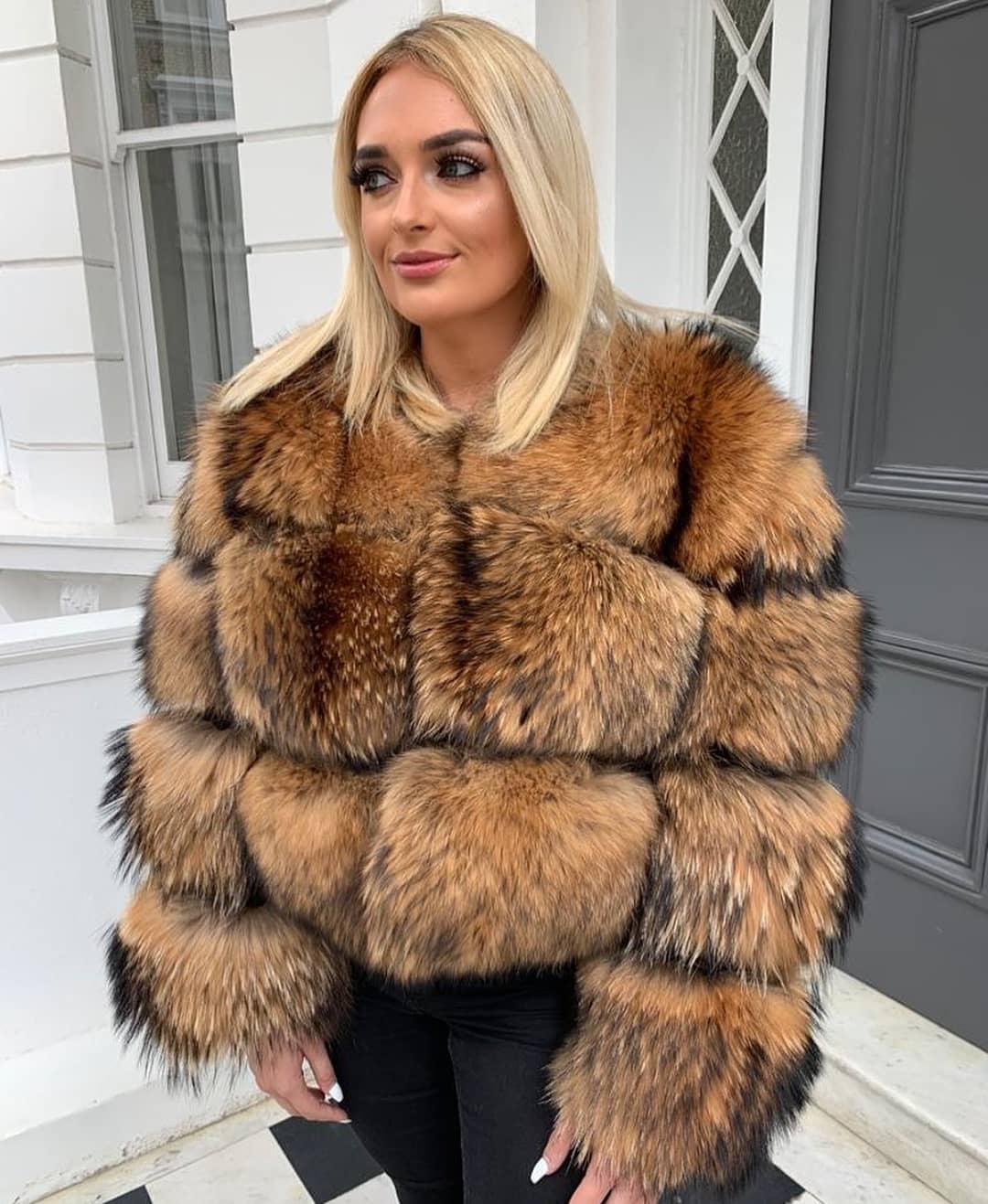 coat fur natural : fox fur jacket