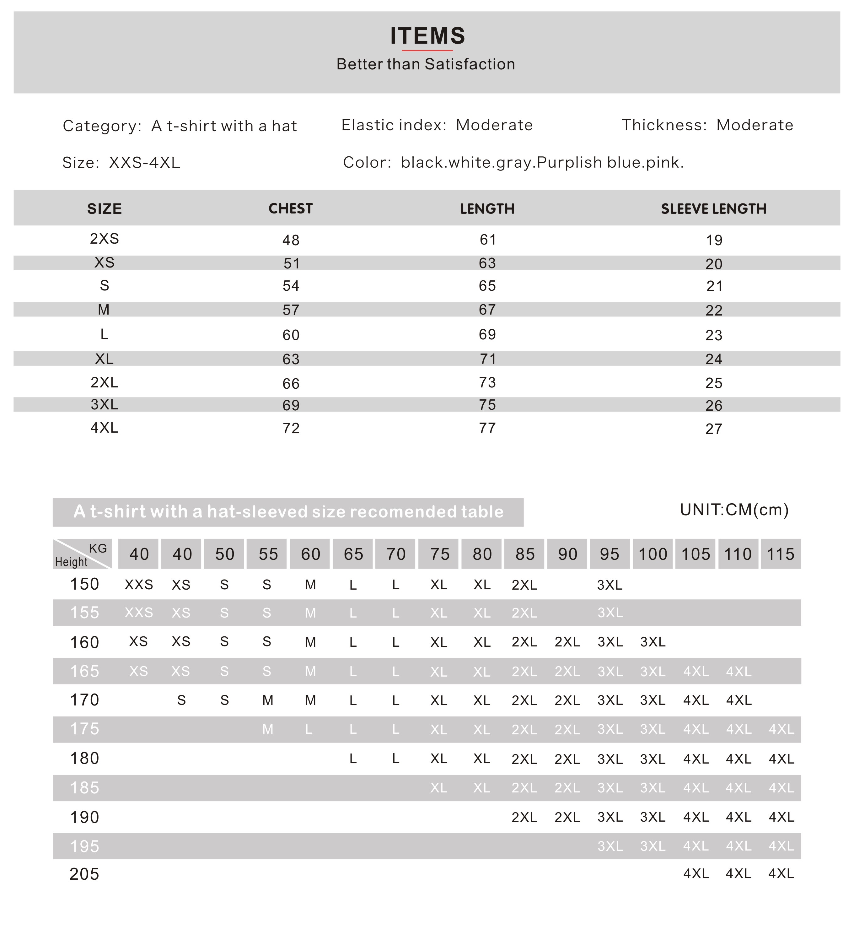 Size : XXS-4XL 100-150