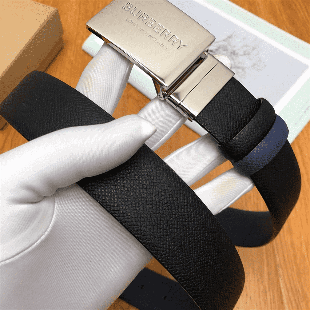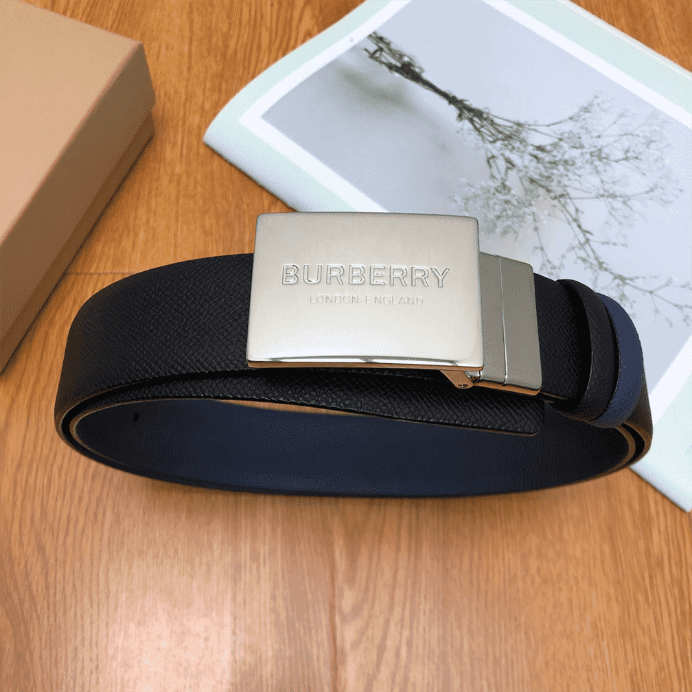 BURBERRY REVERSIBLE PLAQUE BUCKLE GRAINY LEATHER BELT – B25
