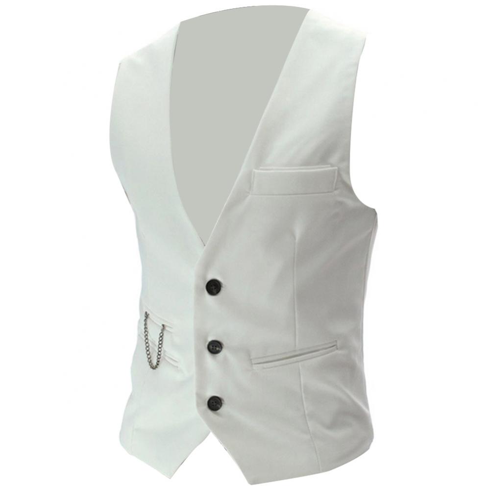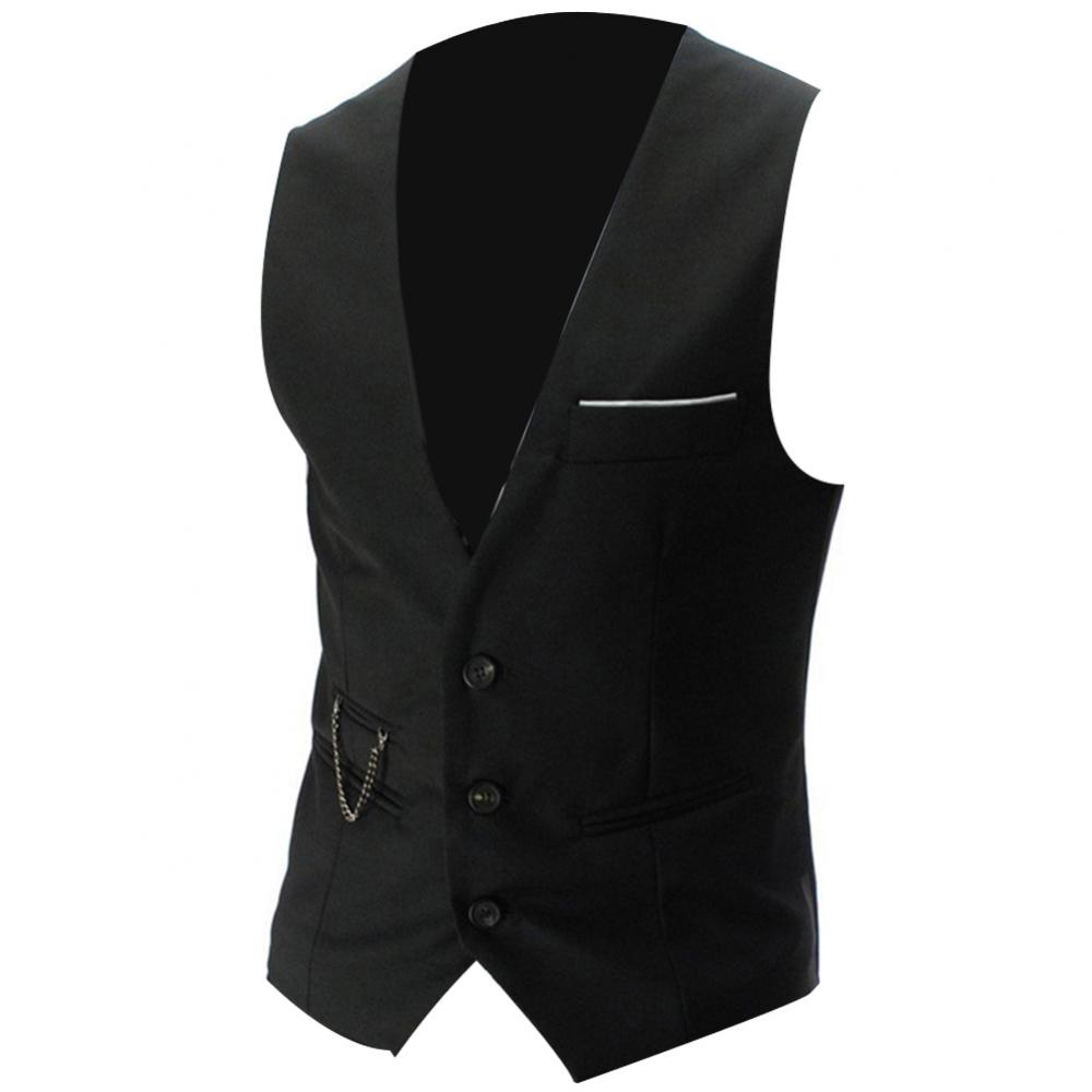 Fashion Men Solid Color V Neck Sleeveless Button Pocket Blazer Suit Waistcoat