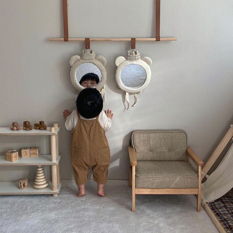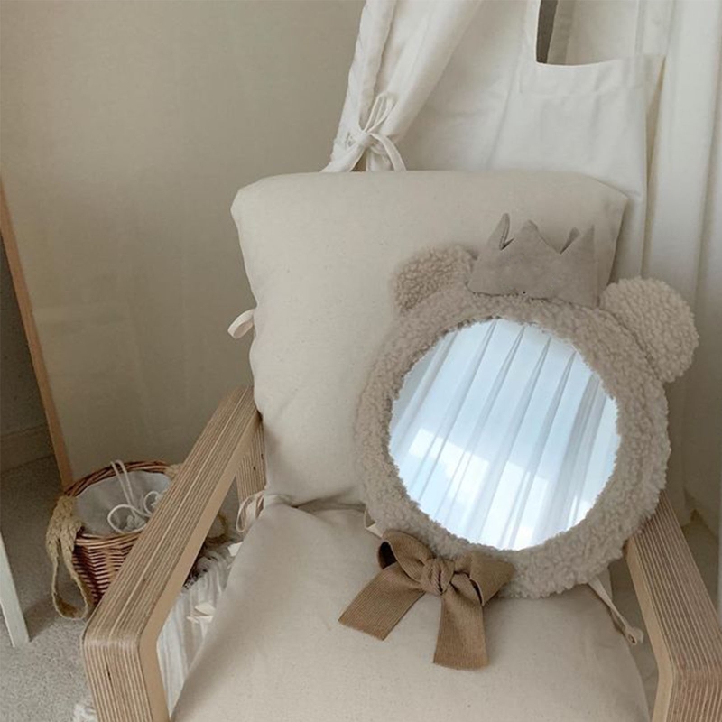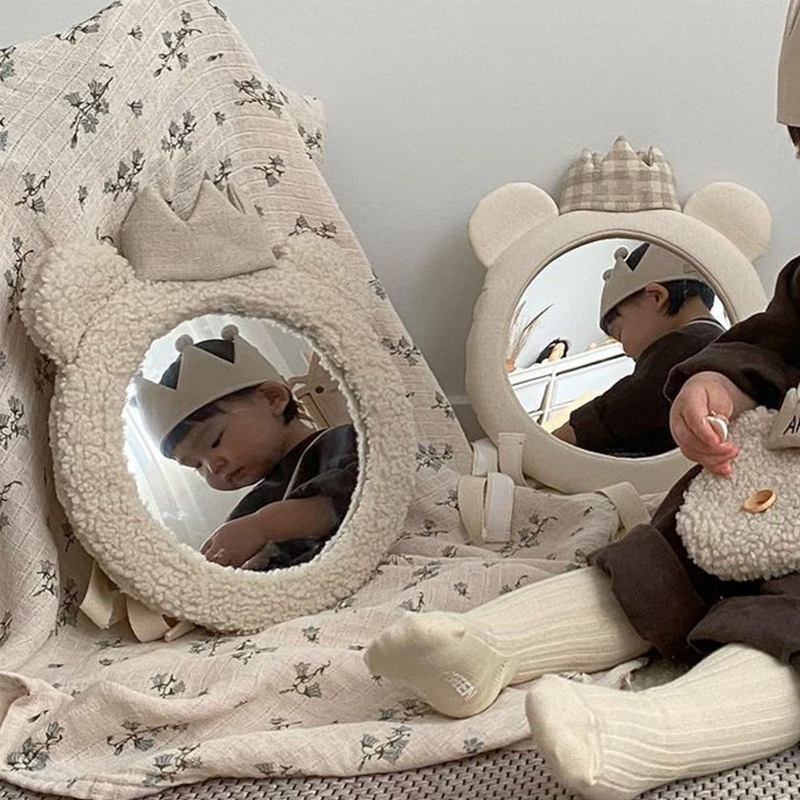 Cartoon Baby Mirror Bear Crown Car Back Seat Mirror Desktop Decor Supplies for Home Kids Bedroom Nursery Decoration Props G99C