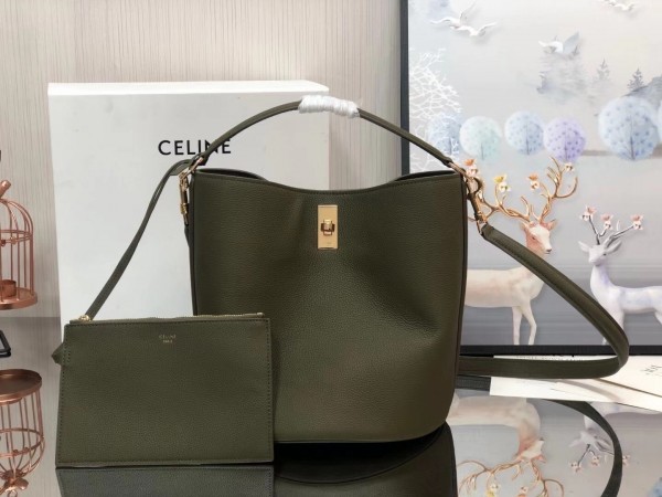 Celine Bucket 16 Bag In Dark Olive Grained Calfskin