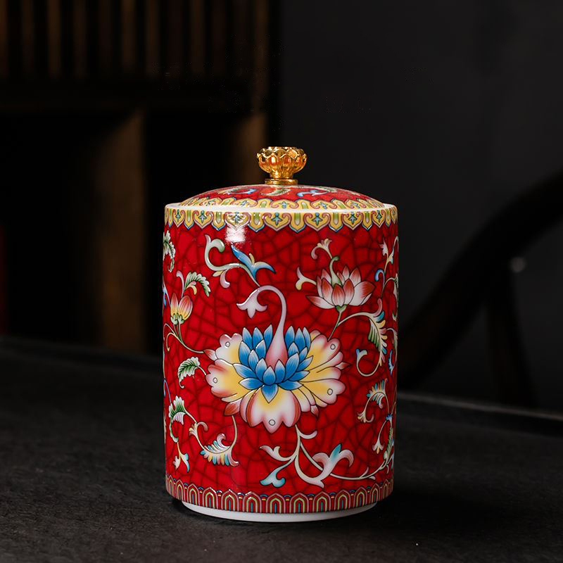 Chinese enamel ceramic tea pot size pot moisture-proof pot living room dried fruit storage pot household kitchen supplies