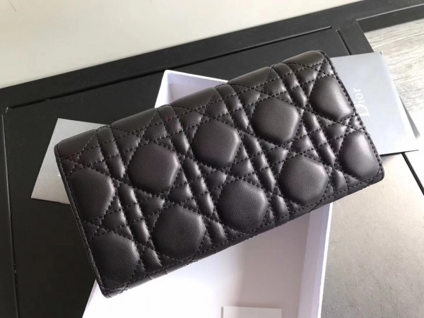 Dior DiorAddict Continental Wallet In Black Lambskin