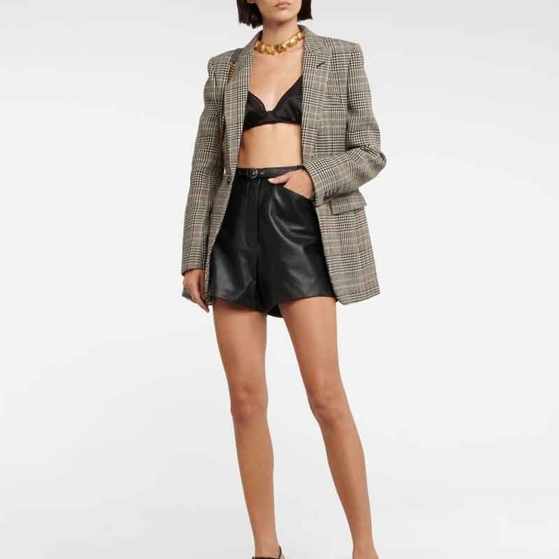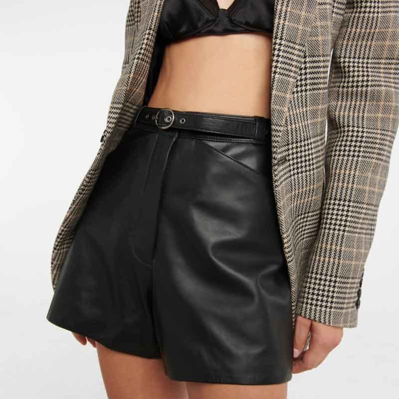 Early Autumn Genuine Leather Black Shorts Women Fashion Runway High Waist Pocket Design Sexy Short Pants Elegant Luxury Clothes.A0780