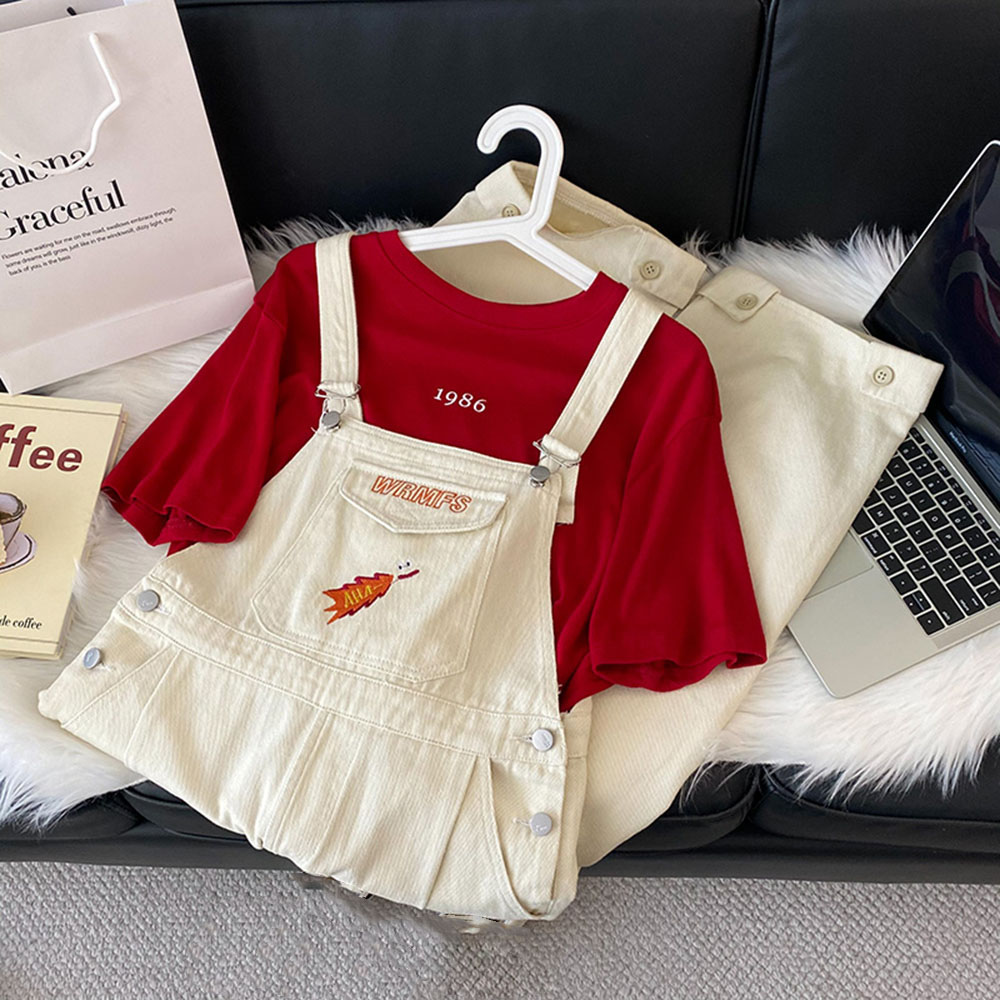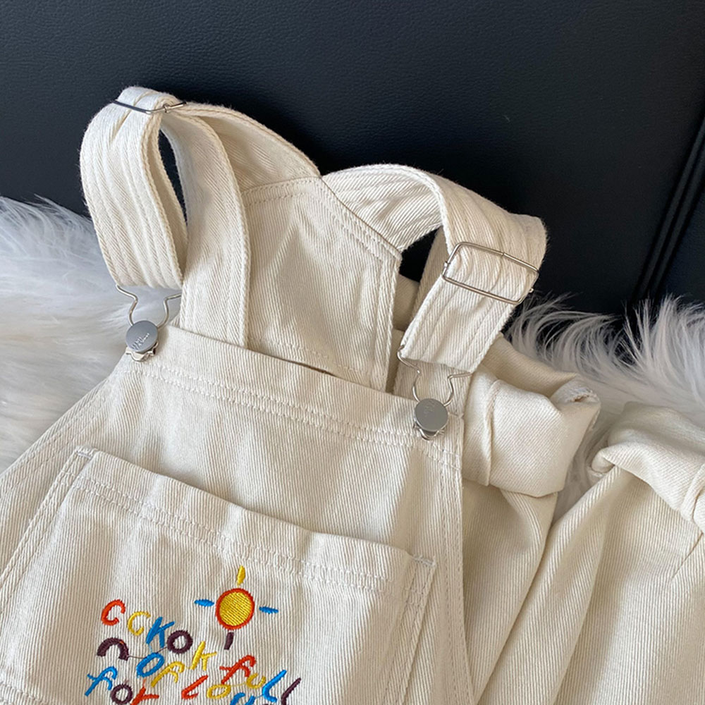 Embroidery White Denim Overalls Women Straps Pants High Waist Wide Leg Pants Casual Loose Female Jumpsuit Jeans New