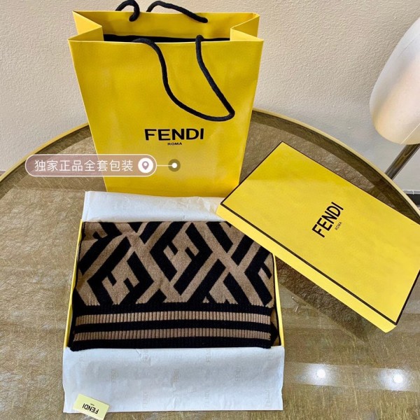 Scarf made of an exquisite blend of wool and viscose with a soft, compact feel. The jacquard weave creates the iconic macro FF motif in tones of black and brown.