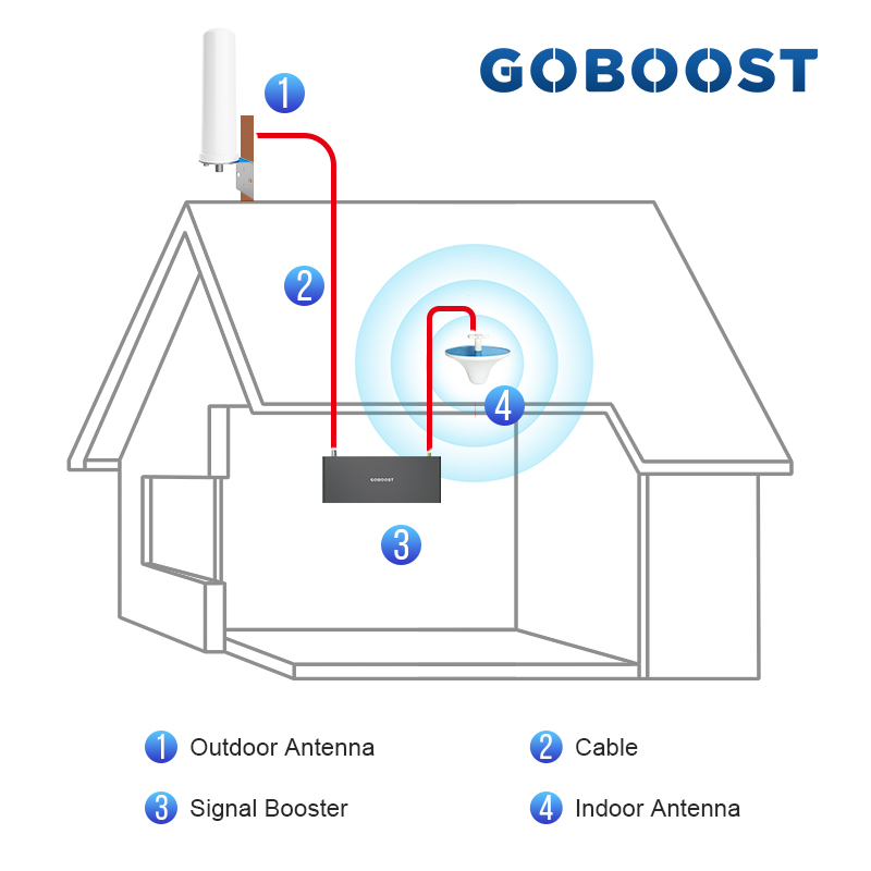 GOBOOST 70dB Signal Booster 2G 3G 4G Cellular Amplifier LTE 700 800 850 900 1800 2100 MHz Network Repeater With 360° Antenna Kit