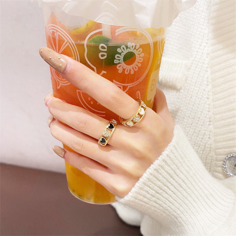 Goods : Korean ins trendy heart-shaped combination ring for men and women personality simple black love hollowed out adjustable