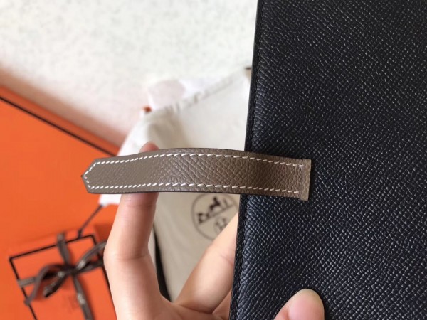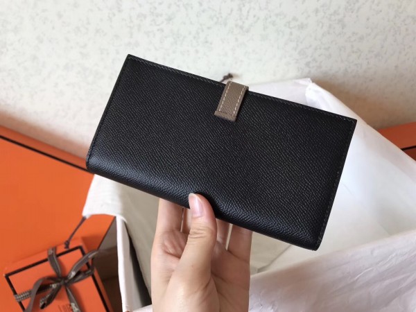 Hermes Bi-Color Epsom Bearn Wallet Black/Taupe