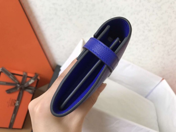 Hermes Kelly Classic Long Wallet In Blue Electric Epsom Leather