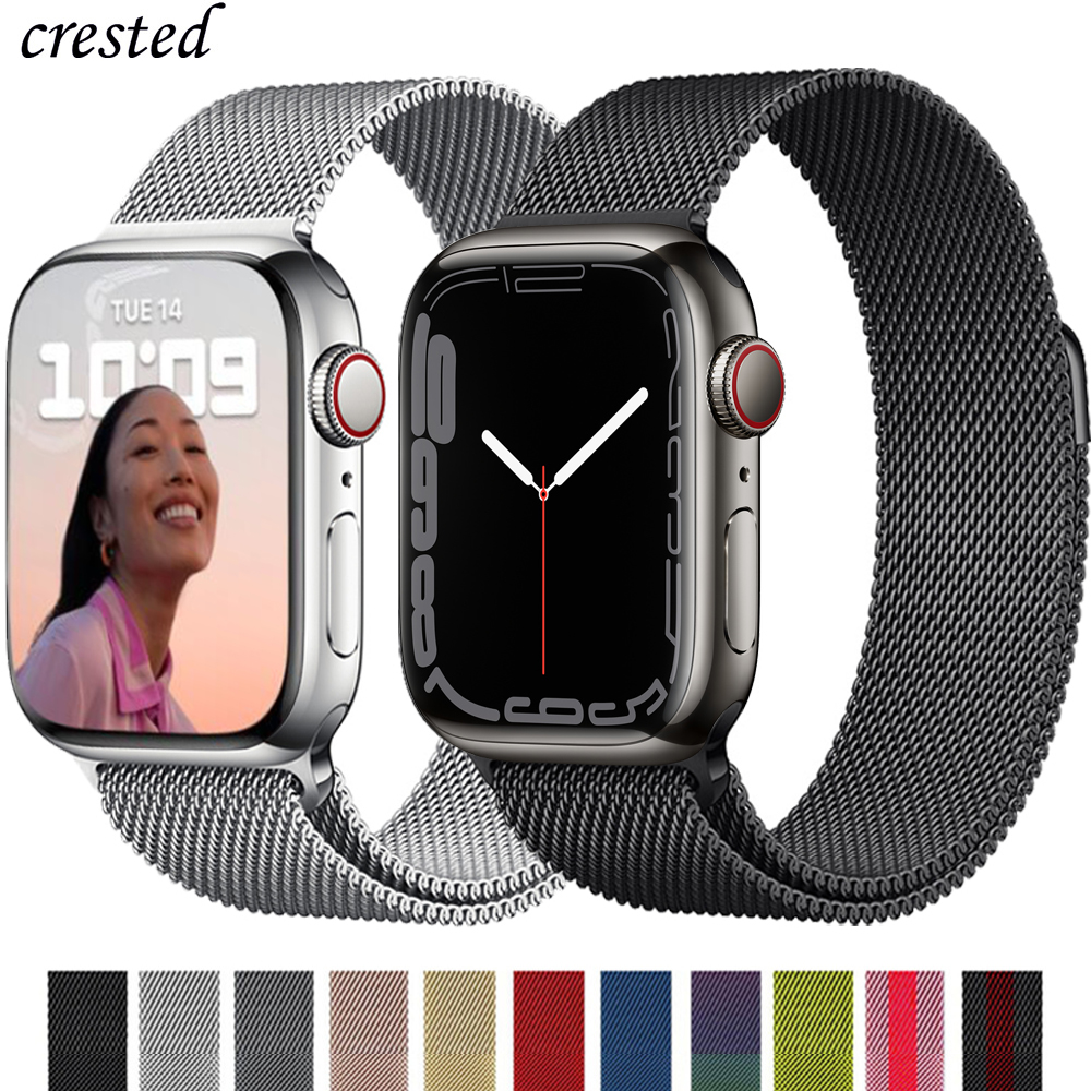 Milanese loop strap For Apple watch band 45mm 41mm 44mm 40mm 38mm 42mm Stainless steel Metal belt correa bracelet iWatch series 7 5 4 3 se 6