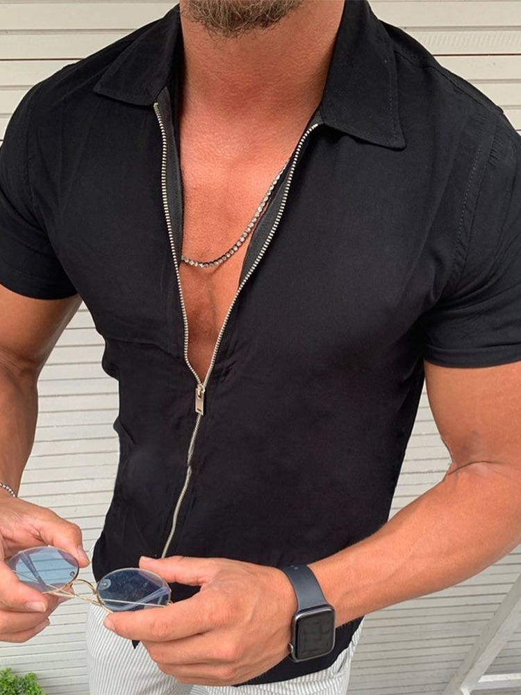 Men's Shirts 2022 Summer Men's Tide Brand New Fashion Simple Solid Color Casual Short Sleeve Zipper Shirt Cardigan