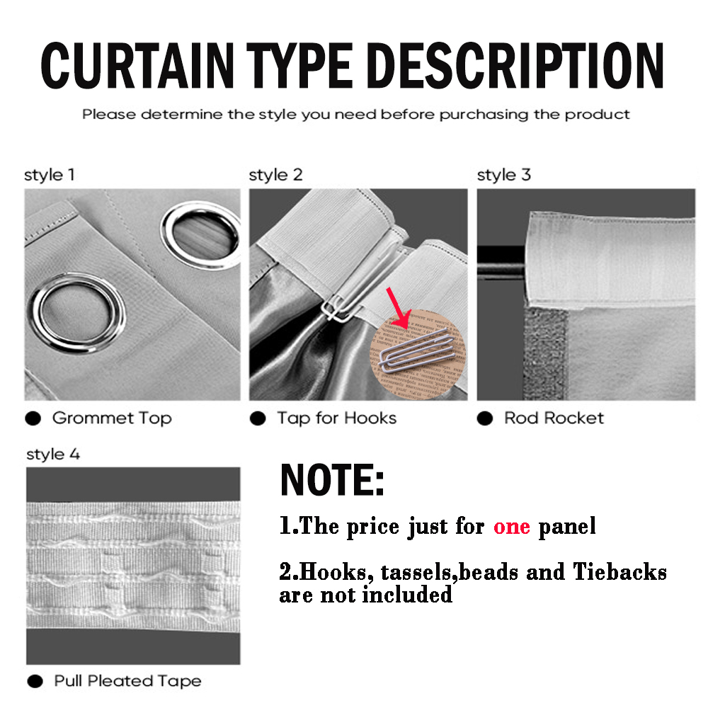 1. Price:The price includesONE piece(ONE panel) of curtain orONE piece(ONE panel) of tulle curtain.(if you want one panel on each side of your window, please order 2 pieces.)