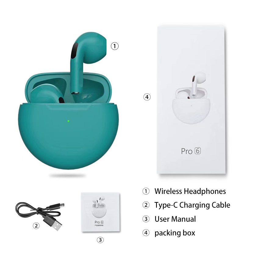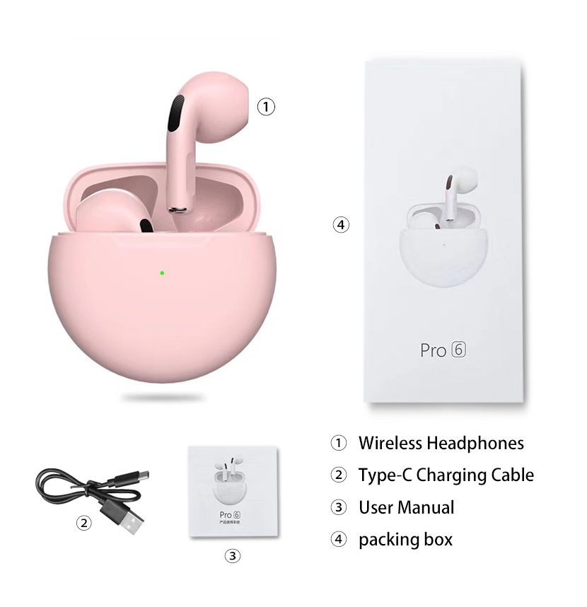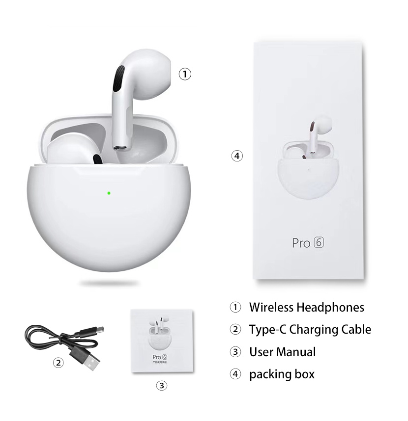 2022 Original Pro6 TWS Headsets For Iphone Xiaomi Phones Bluetooth 5.1 Touch Control Wireless Earphones Sport Earbuds Music Headphone