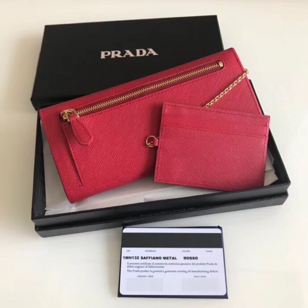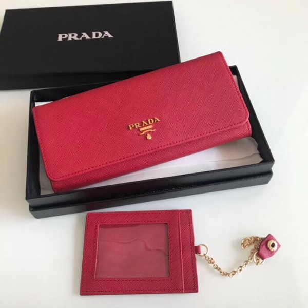 Prada Continental Wallet In Red Saffiano Leather