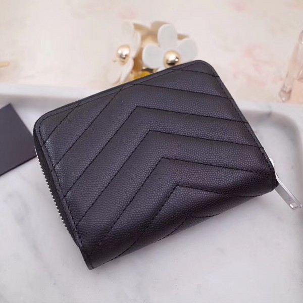 It’s definitely not unusual for Saint Laurent to make its YSL interlocking monogram the centre of most its designs, and the brand sticks to its winning formula with the monogram compact zip around wallet. Trimmed with siliver-tone hardware its compact profile is made from grain de poudre embossed leather with chevron quilting. It opens to reveal a neatly designed space for cash and cards, while a roomy zipped compartment is perfect for loose change.
