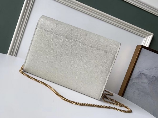 Saint Laurent WOC Cassandra Chain Wallet In White Leather