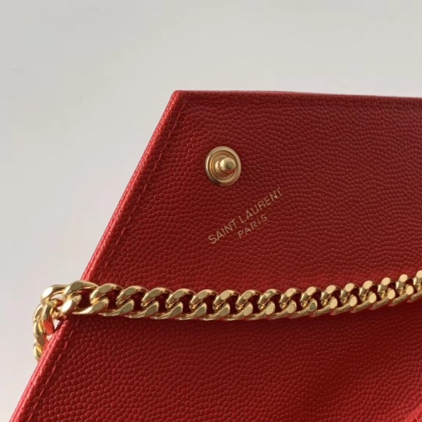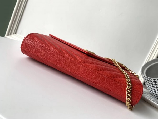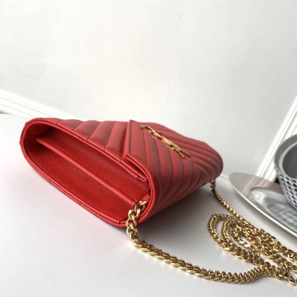 Saint Laurent WOC Monogram Chain Wallet In Red Leather