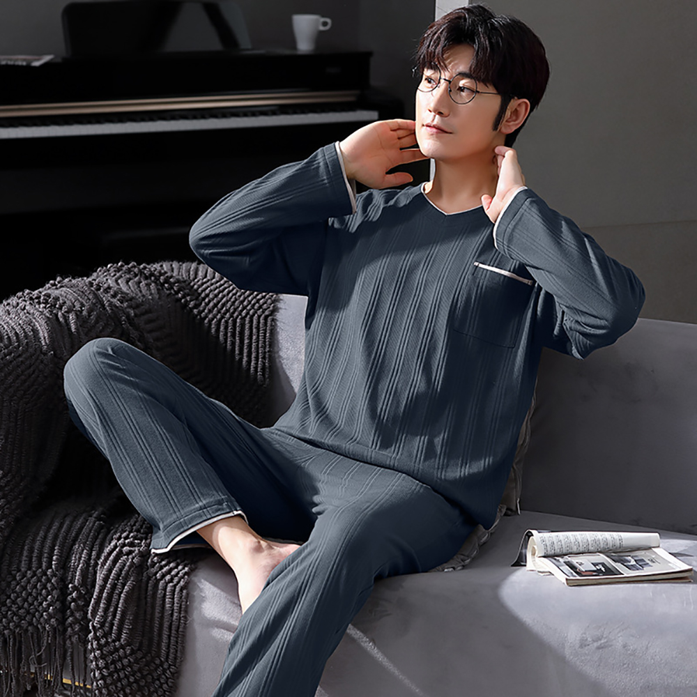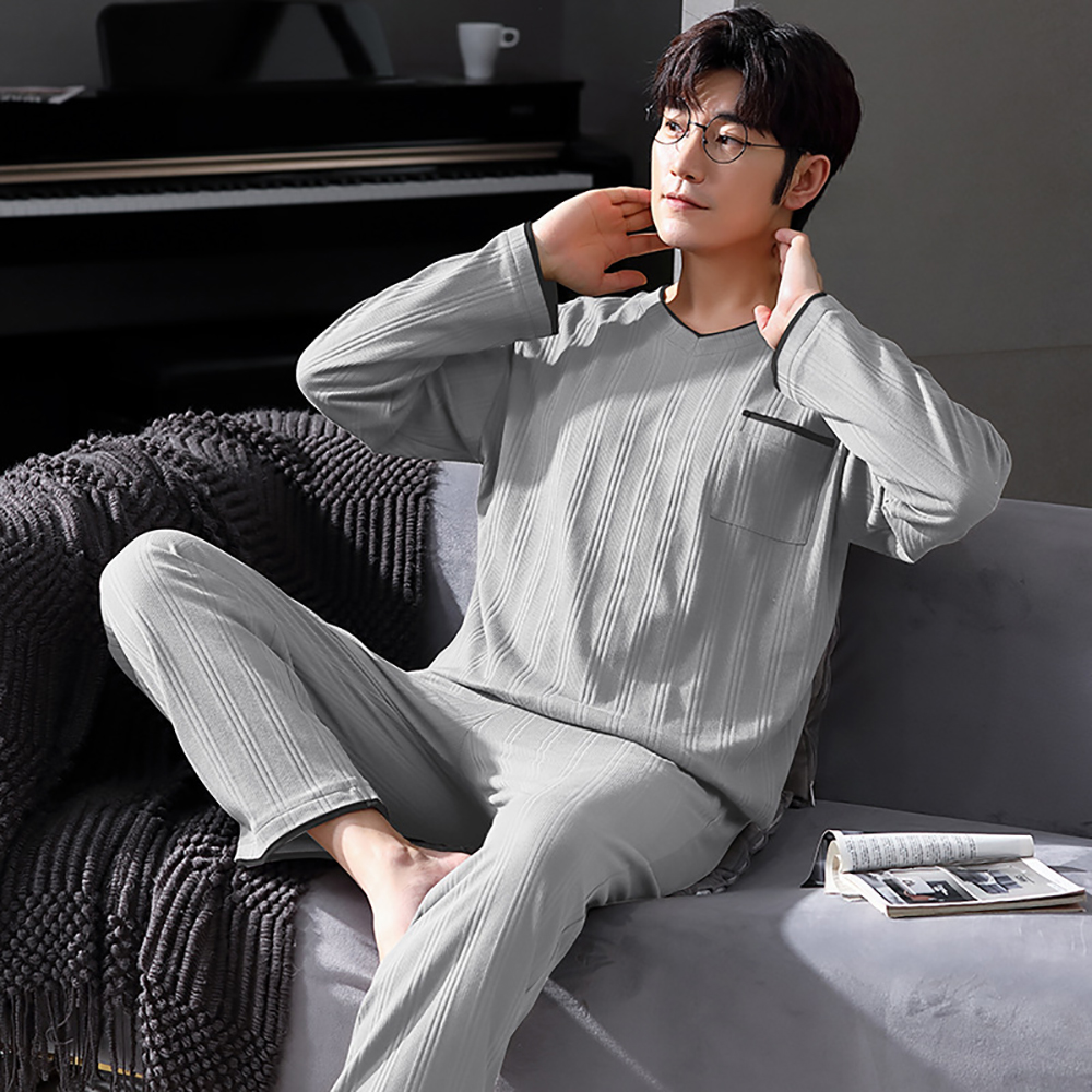 Spring Summer Male Long Sleeve Pajama Sets Casual Striped Lounge Set Comfortable Soft Sleepwear Pijama Plus Size Pajamas for Men
