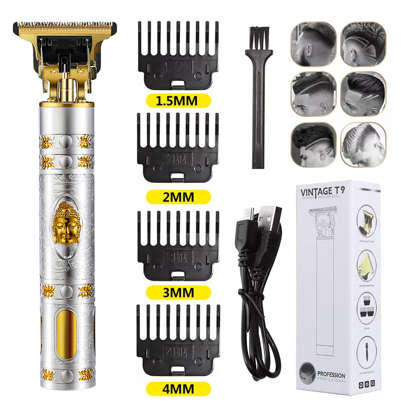 2022 Vintage T9 0MM Electric Cordless Hair Cutting Machine Professional Hair Barber Trimmer for Men Clipper Shaver Beard Lighter