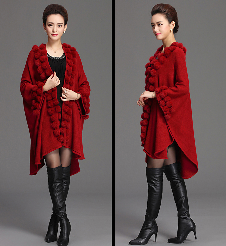 Design : Women Rabbit Fur Poncho Shawl Coat