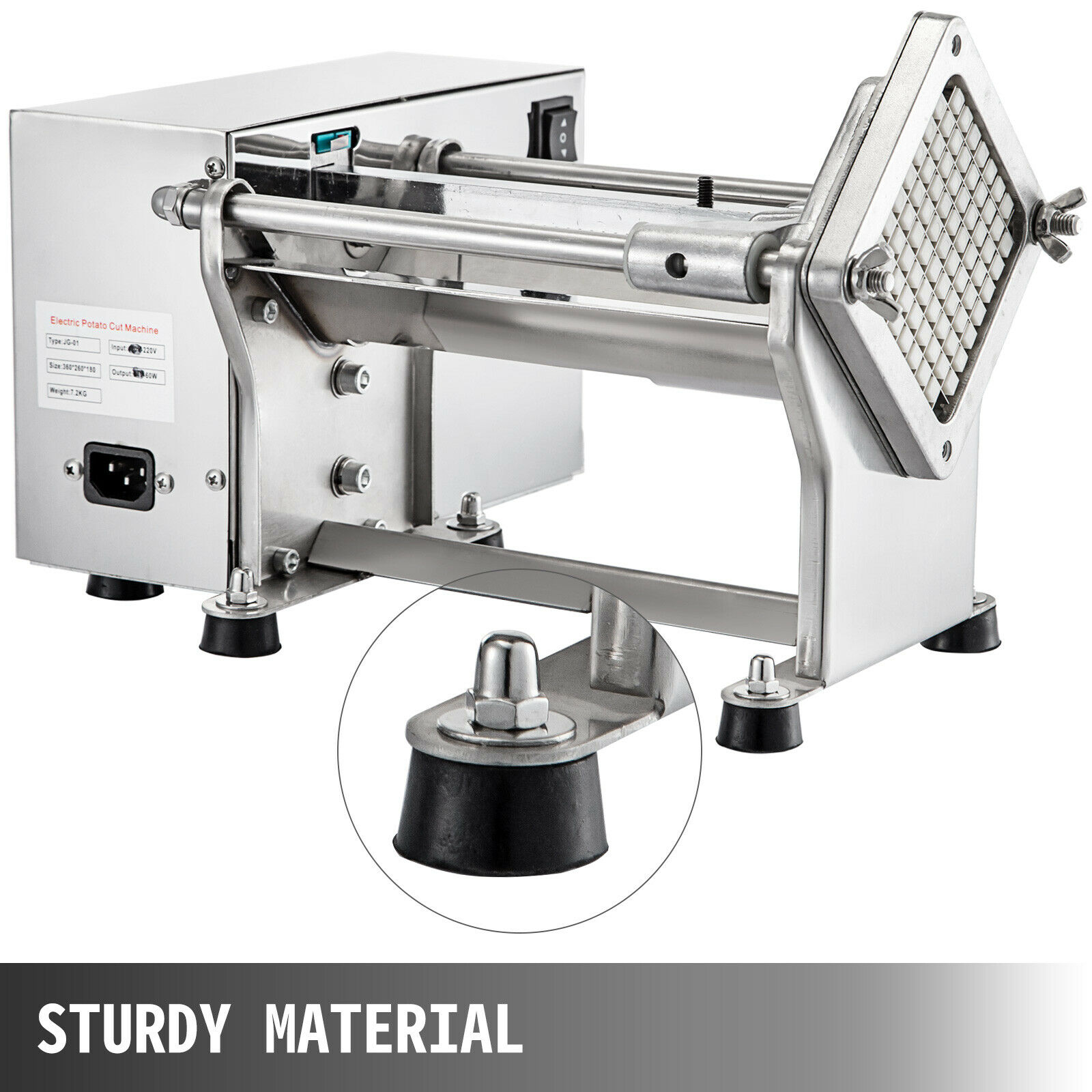 The fry cutter electric is made of all food-grade stainless steel, sturdy and durable. The 6 non-slip foot pads at the bottom effectively prevent the machine from sliding during operation.
