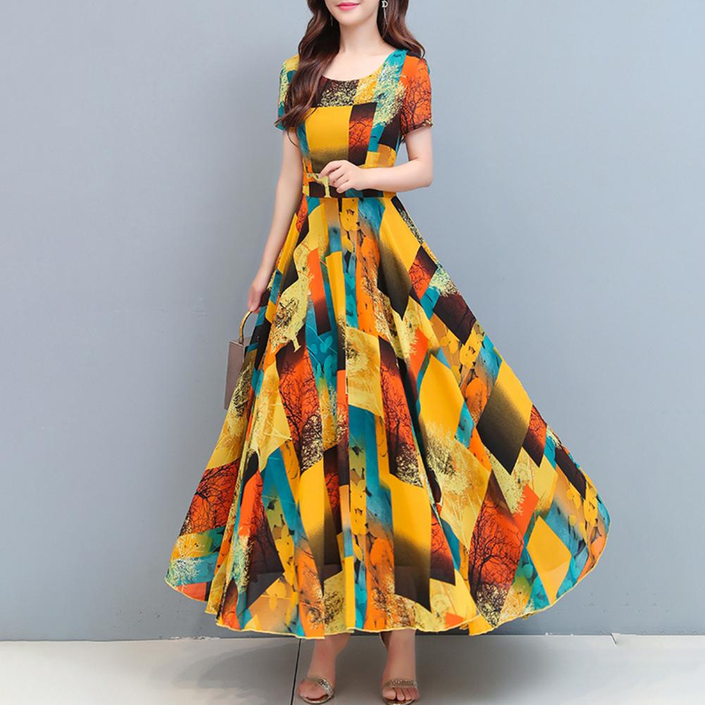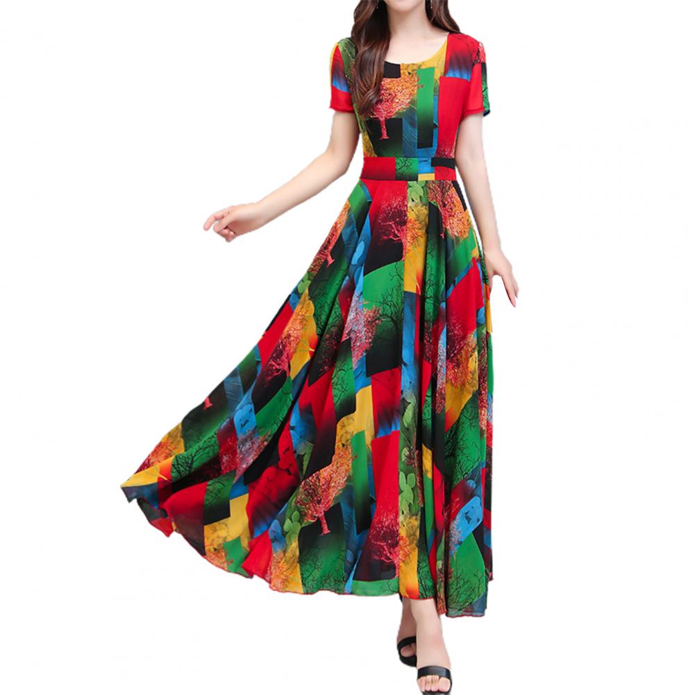 Women Dress Colorful Print Large Hem Summer A-Line Long Dress Streetwear