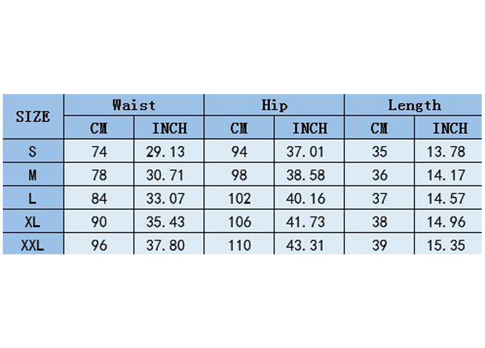 Size | US Size | UK Size | EU Size | Waist | Hip | Length |