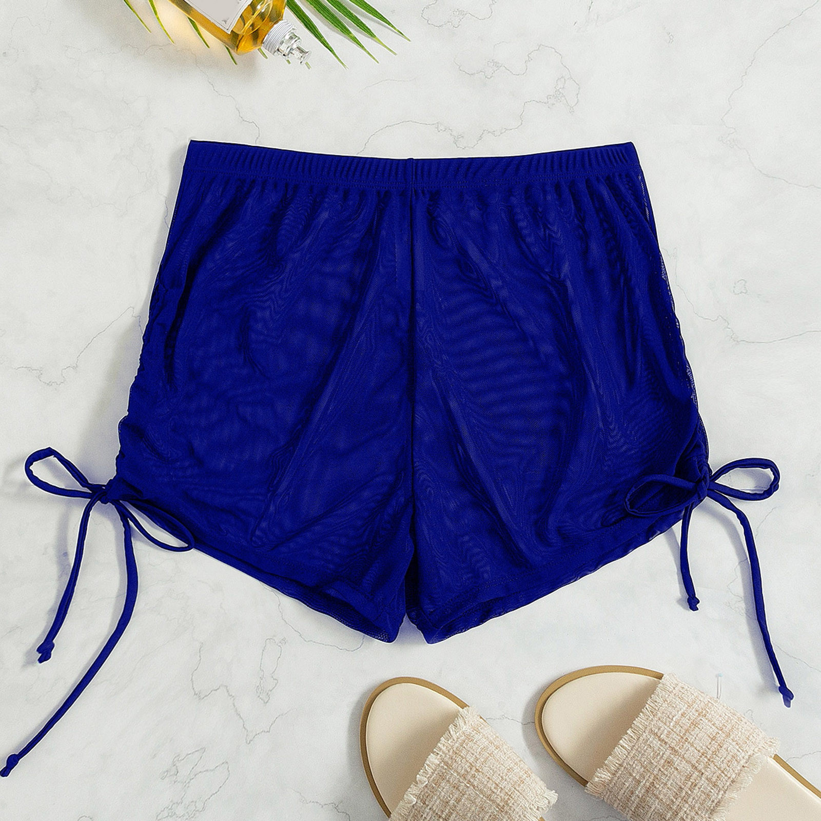 Women Side Drawstring Mesh Cover Up Shorts Beach Cover Up Beach Wrap Bikini Wraps Cover Ups For Swimwear Ruffle Pants