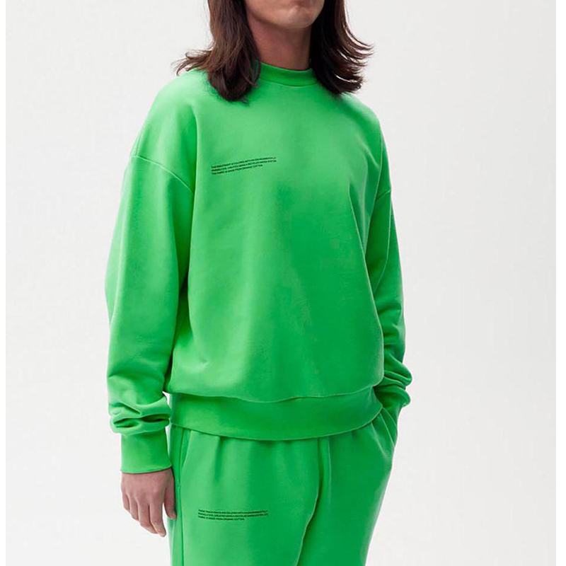 This hoodie is made from 100% organic cotton. It's a mid-weight fabric with a looped texture on the inside for extra softness.