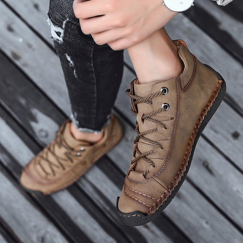 YISHEN Ankle Boots Men Casual Shoes Leather Loafers Hand Stitching Outdoor Working Booties Soft Sole Breathable Flats Shoes