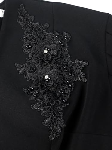 AOMEI Woman Basic V Neck Outfit Floral Appliqued Womens Black Peplum Blouse with Bead Puff Sleeve Shirts