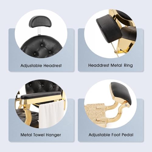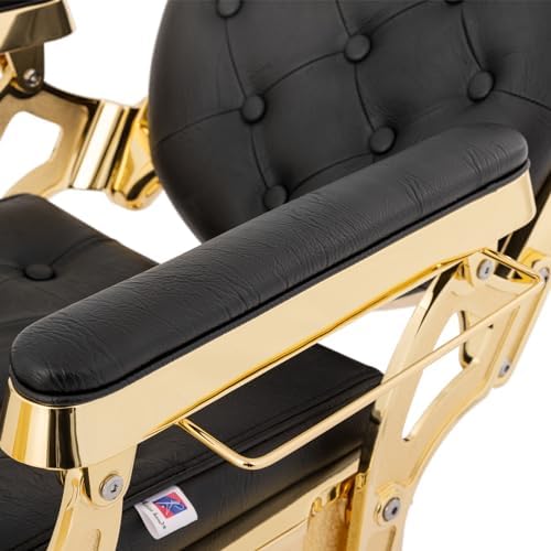 Brand Artist hand Color Gold2 Product Dimensions 24"D x 24.8"W x 40"H Special Feature Antique styling, padded armrests, adjustable & removable headrest, full 45 degree recline, metal towel & tool hangers, and backrest recline up to 135 degrees Product Care Instructions Wipe Clean Unit Count 1.0 Count Recommended Uses For Product Haircutting, Shaving Style Retro Pattern Solid Finish Type Chrome Plated" or "Chrome Finish Room Type Barbershop Age Range (Description) Adult Included Components metal towel hanger, metal tool hanger Theme Vintage Shape irregular shape Model Name Vintage Barber Chair Surface Recommendation Hard Floor Seat Back Interior Height 18.7 Inches Furniture base movement Swivel Indoor/Outdoor Usage Indoor Furniture Finish Chrome Seat Height 22.5 Inches Seat Depth 20.7 inches Cushion Style Boxed Edge Seat Length 25.8 Inches Reclining Position Count [MINIMUM] 2 Tilting Yes Is Customizable No Is Electric No Is Foldable No Form Factor Recliner Manufacturer Artist hand ASIN B0D6BK4PP3 Customer Reviews