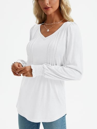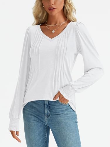 AUTOMET Womens Long Sleeve Shirts V Neck Fall Casual Tops Fashion Outfits Loose Fit Pleated Front Tunic Clothes 2024