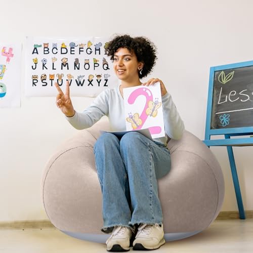 Features: Thoughtful presents: These inflatable chairs for adults are feasible to be sent as gifts to your colleagues, classmates, children, parents, relatives, neighbors and so on, making them feel your sincere thoughtfulness. Enjoy comfortable leisure: The inflatable outdoor bean bag chair is very suitable for living room, bedroom, balcony, garden, outdoor patio, camping, travel, beach, hiking, allowing you to enjoy comfortable leisure time at any time. Specifications: Material: flocked PVC Color: coffee color Size: about 43 x 43 x 34 inches/ 110 x 110 x 85 cm after being inflated Package includes: 2 x Inflatable bean bag chair Notes: Manual measurement, please allow slight errors on size. The color may exist a slight difference due to different screen displays. The air pump is not included, after inflating, please press the air valve tightly and press down the air valve